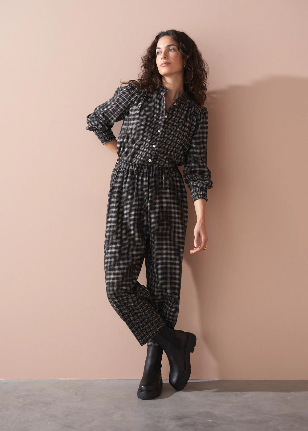 AGATHA COTTON CHECK SHIRT - BLACK