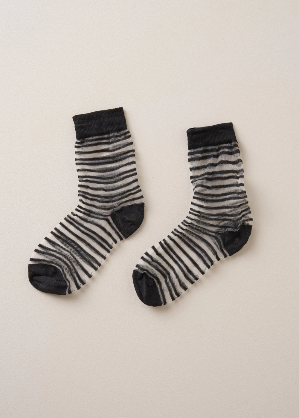 Add a statement flourish to your everyday look with the Cole Socks. Crafted from a soft cotton blend, they feature a black stripe offset by sheer panels for a hint of pattern and modern edge. Finished with a classic ribbed hem at the ankle, they're perfect for pairing with trainers, loafers or heels alike.