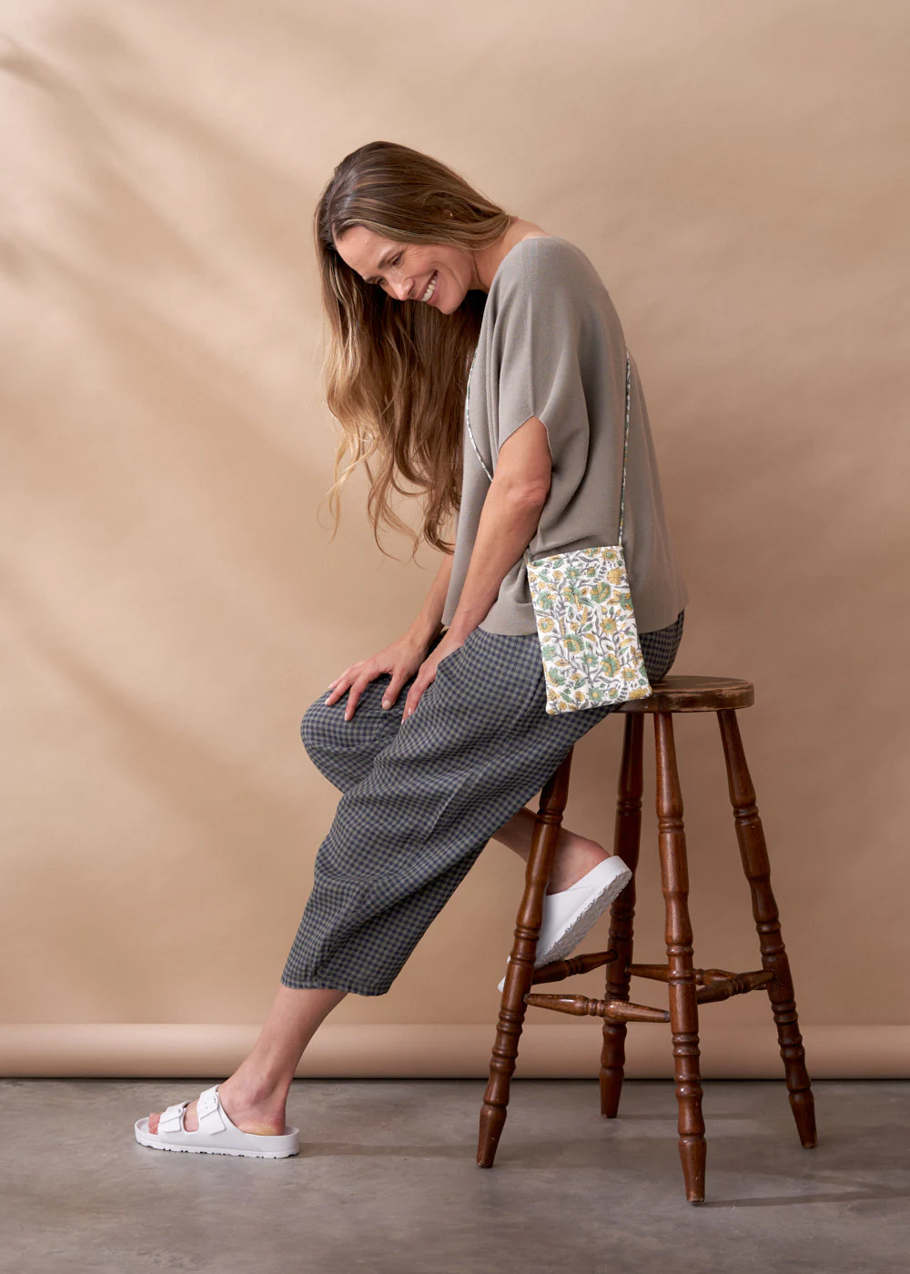 Made from soft cotton with a gently quilted finish, the Kita Bag is printed with an intricate floral motif in greens and yellows. The long strap allows for easy, crossbody wear, while a hidden magnetic popper keeps your essentials secure. Understated yet considered, it’s the piece you’ll reach for on busy days and easy weekends alike.