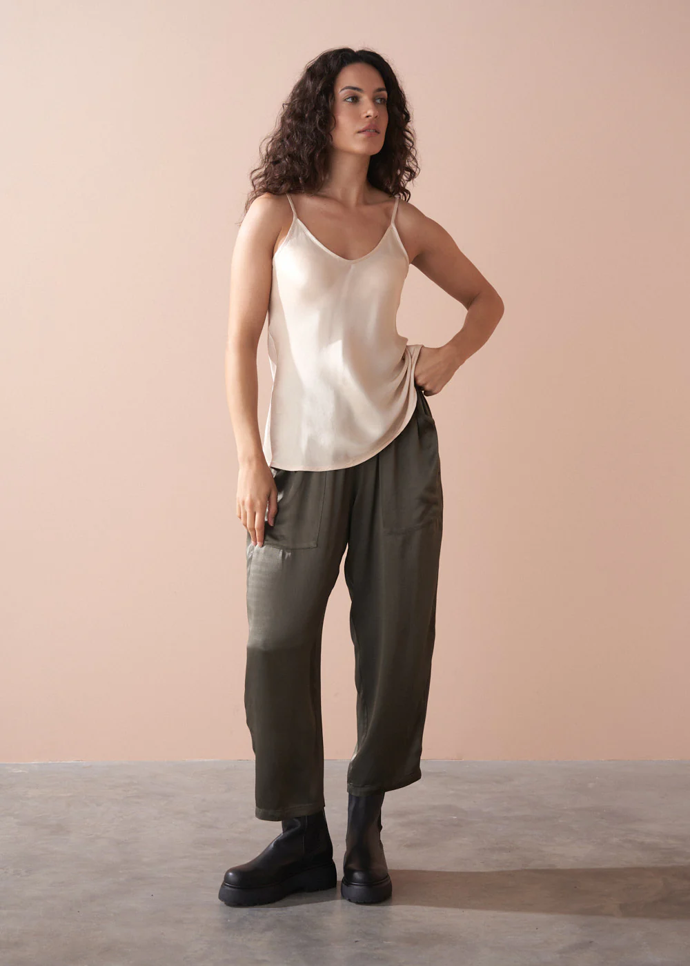 LULU SATIN CAMI - OATMEAL