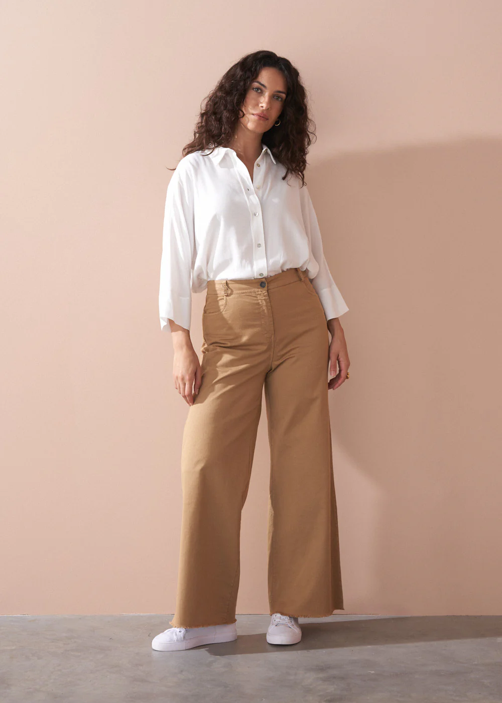 With a full-length, wide-leg shape, the Milly Trousers are a versatile style with a bold, structured silhouette. Crafted from soft stretch cotton and finished with a raw hem for an effortless, slightly undone edge.