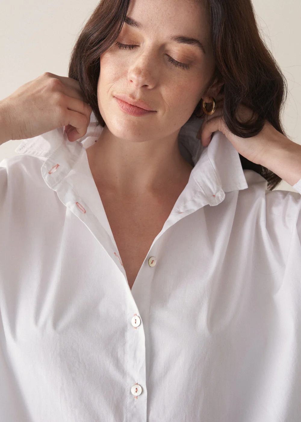 The Moira cotton shirt combines a chic, boxy oversized silhouette with a tiered hem and lustrous mother-of-pearl buttons, creating a fresh, modern take on the classic white shirt.
